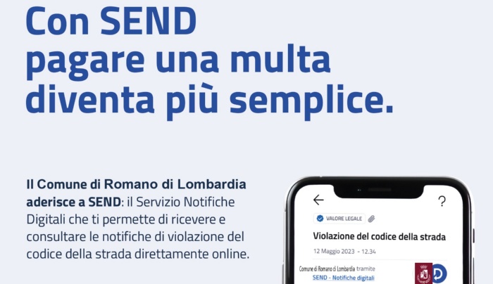 Con l’adesione del Distretto Polizia Locale Bassa Bergamasca Orientale - Comune di Romano di Lombardia a #SEND - Servizio Notifiche Digitali da oggi è più facile gestire le notifiche di violazione del codice della strada. Risparmia tempo e paga direttamente online in modo semplice e sicuro, attraverso la piattaforma dedicata o dall’app IO.