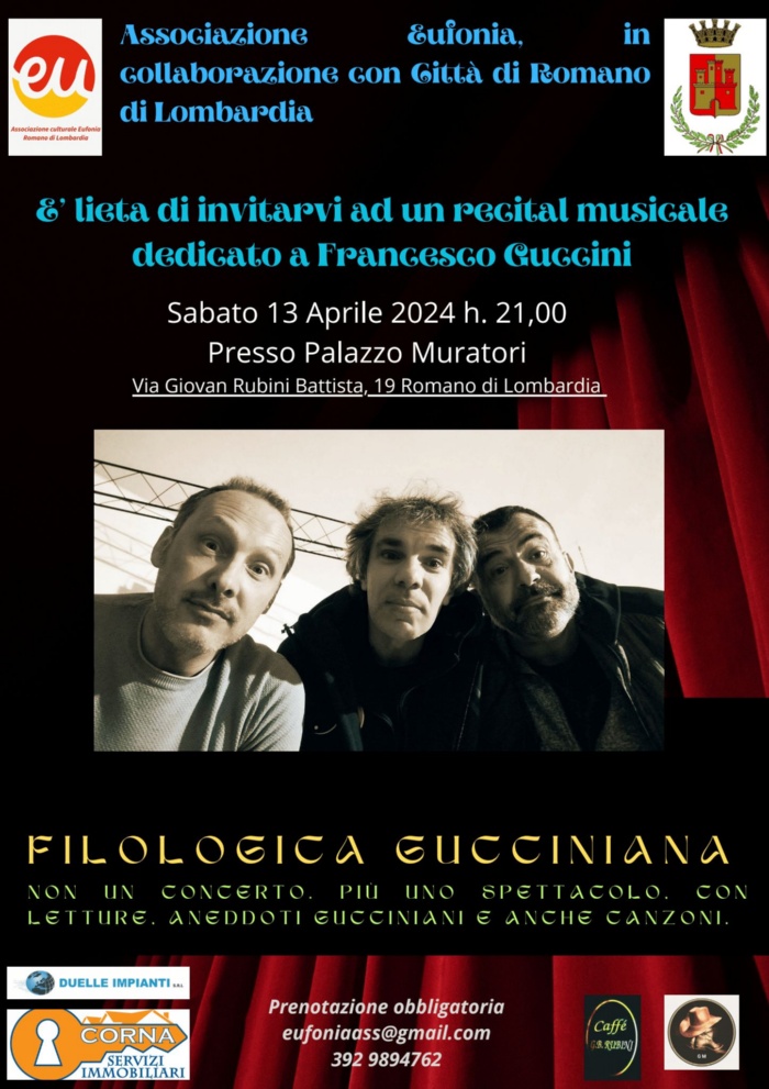 Descrizione "Filologica gucciniana" è un reading musicale dedicatoa Francesco Guccini: letture, aneddoti, canzoni. A cura di Associazione culturale Eufonia Locandina