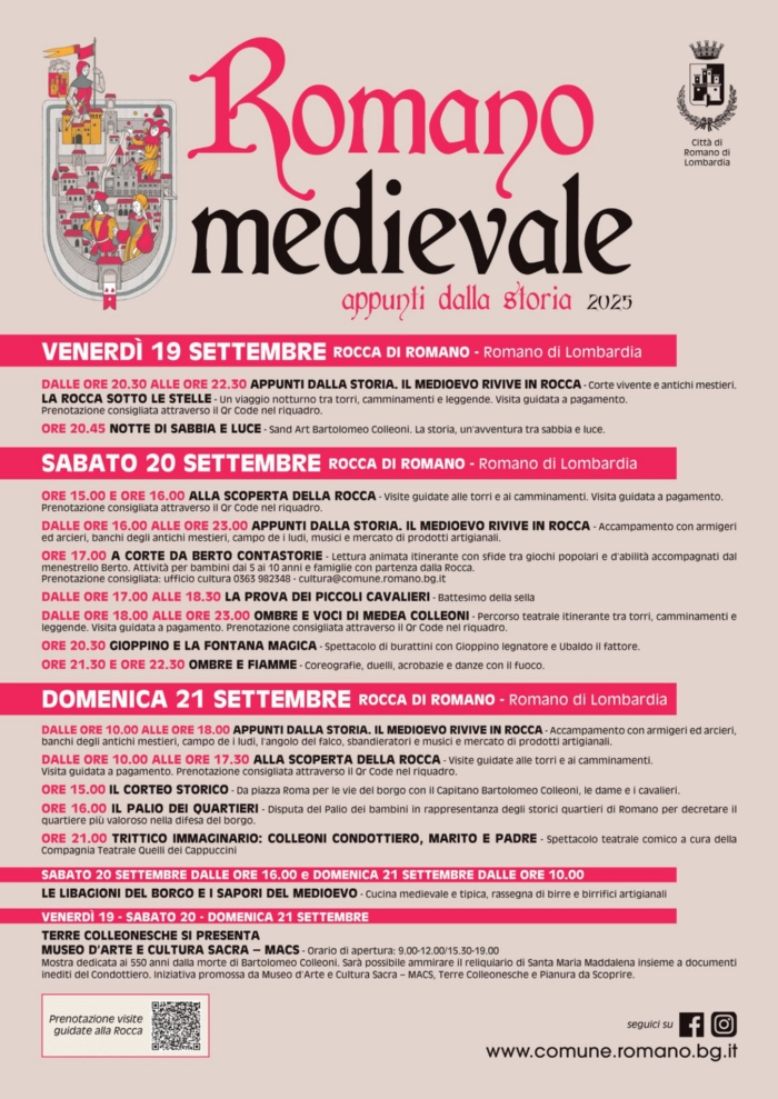 Prenotazione consigliata: ufficio cultura 0363 982348 - cultura@comune.romano.bg.it