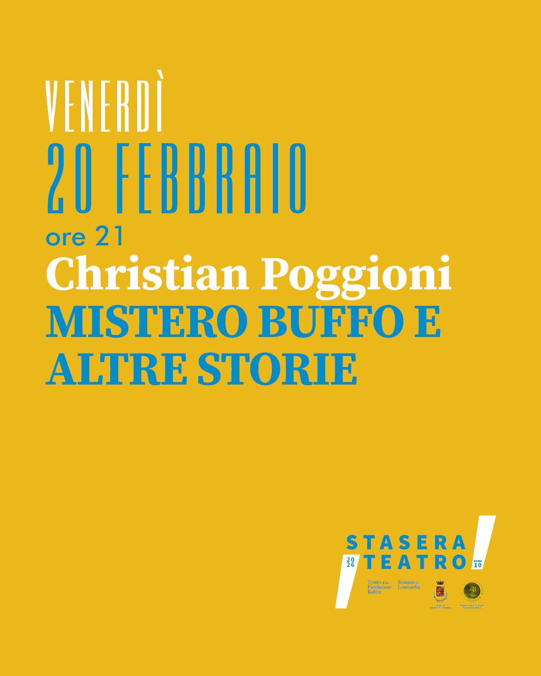 Venerdì 20 febbraio alle ore 21.00 presso il Teatro della Fondazione Rubini, Christian Poggioni presenta "Mistero buffo e altre storie".